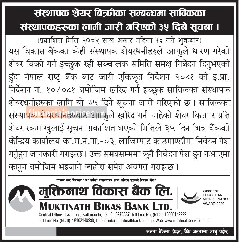 संस्थापक शेयर बिक्री सम्बन्धी साविकका संस्थापकहरुको लागि जरुरी सूचना