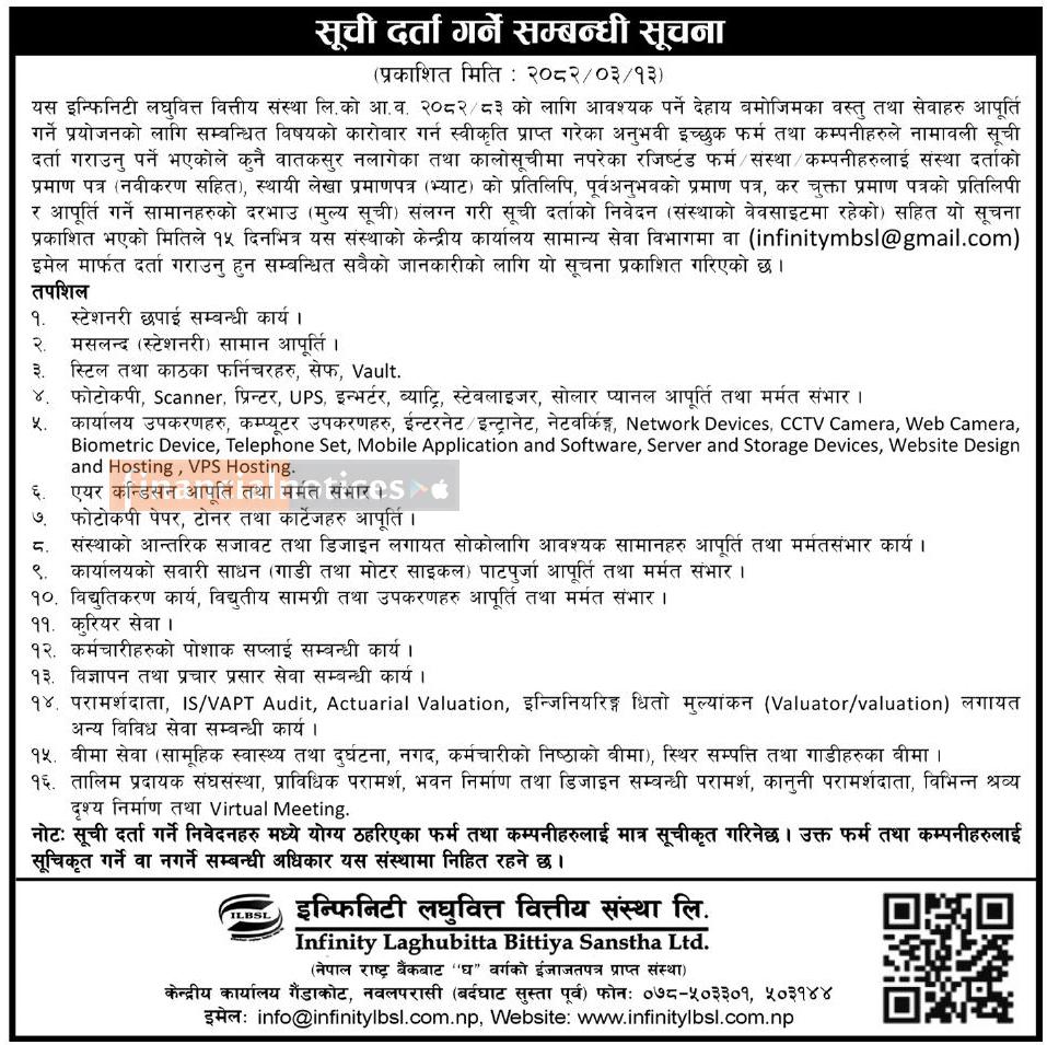 सूची दर्ता गर्ने सम्बन्धी सूचना