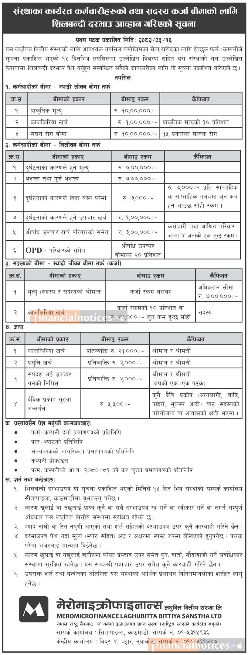 बीमाको लागि शिलबन्दी दरभाउ आव्हान गरिएको सूचना