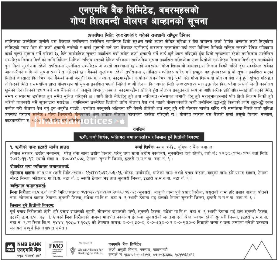गोप्य शिलबन्दी बोलपत्र आव्हानको सूचना