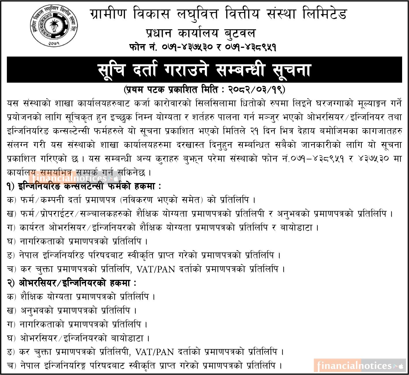 सूची दर्ता गराउने सम्बन्धी सूचना