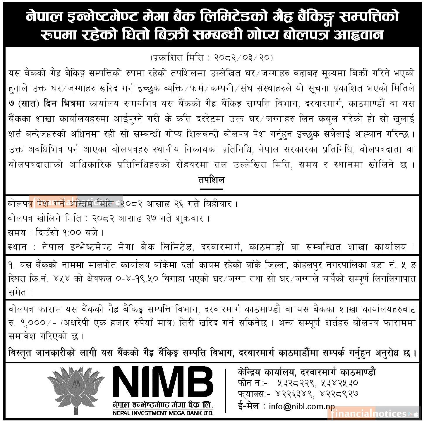 गैह्र बैंकिङ्ग सम्पत्तिको धितो लिलाम बिक्री सम्बन्धी गोप्य बोलपत्र आव्हानको सूचना
