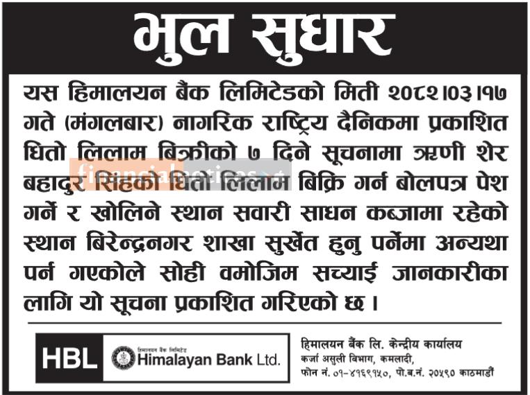 भुल सुधार गरिएको सम्बन्धी सूचना