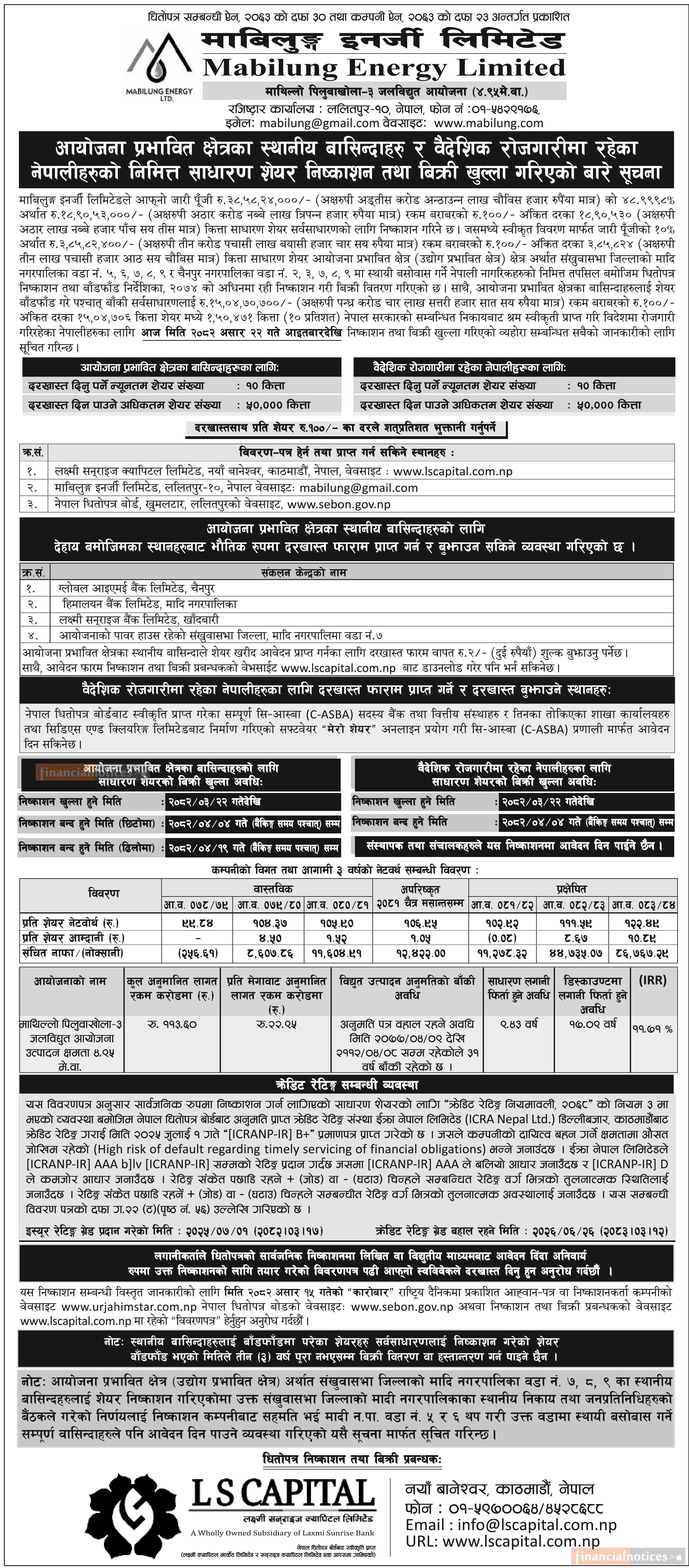 माबिलुङ्ग इनर्जीको आईपीओमा आजदेखि आवेदन दिन सकिने बारे सूचना