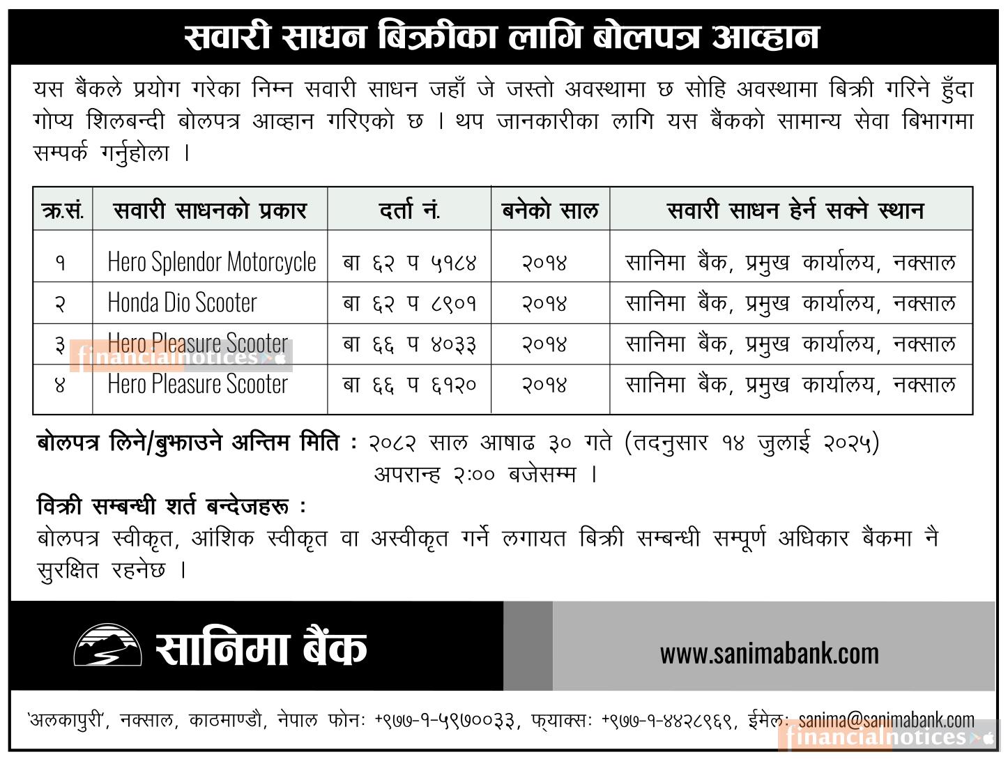 सवारी साधन बिक्रीका लागि बोलपत्र आव्हान सम्बन्धी सूचना