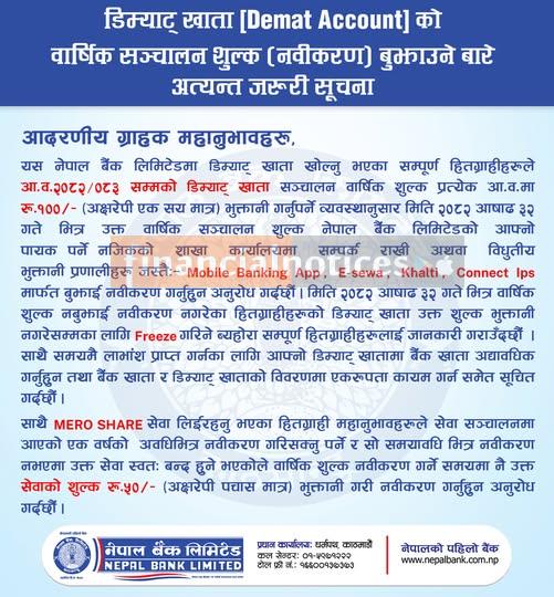 नवीकरण सम्बन्धमा नेपाल बैंकका ग्राहकहरुलाई अत्यन्त जरूरी सूचना