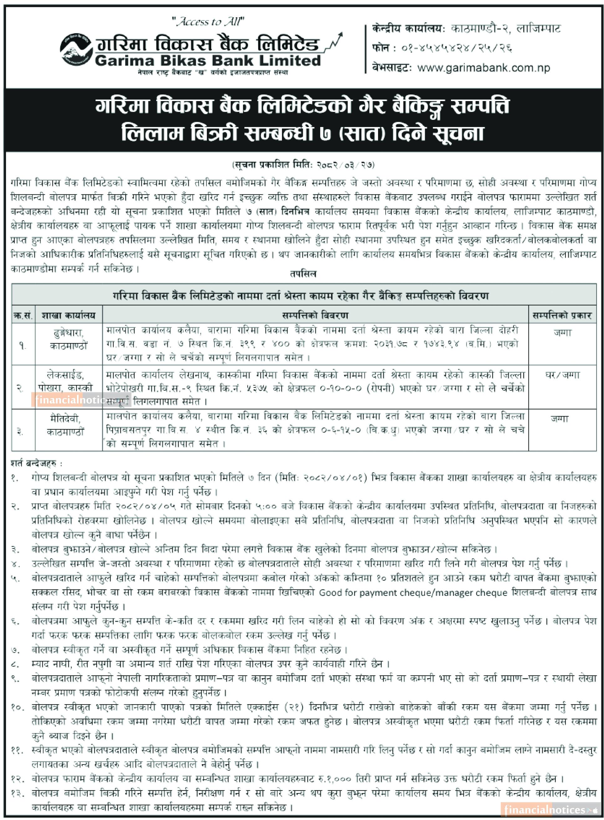 गैह्र बैंकिङ्ग सम्पत्ति लिलाम बिक्री सम्बन्धी ७ दिने सूचना