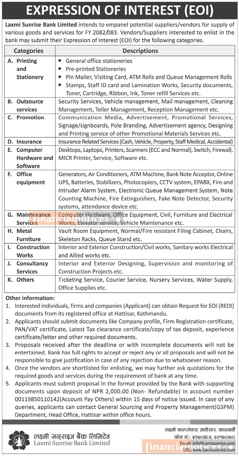 Published by Laxmi Sunrise Bank Limited on 2082-3-30