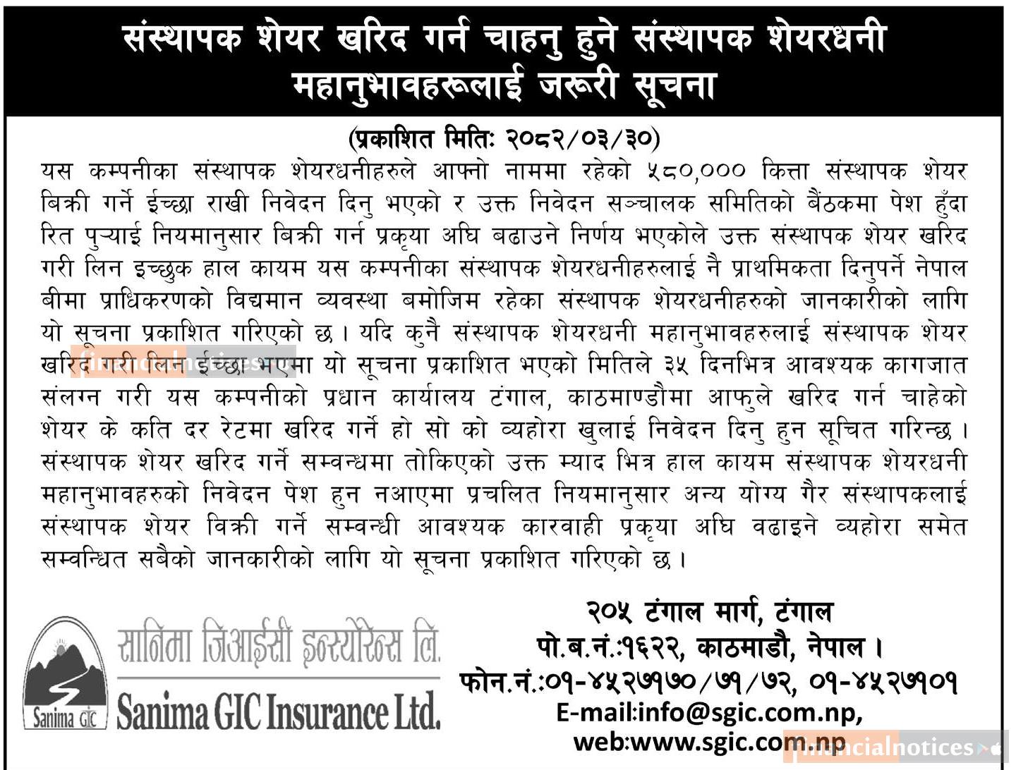 संस्थापक शेयर खरिद गर्न चाहानुहुने संस्थापक शेयरधनीहरुलाई जरुरी सूचना