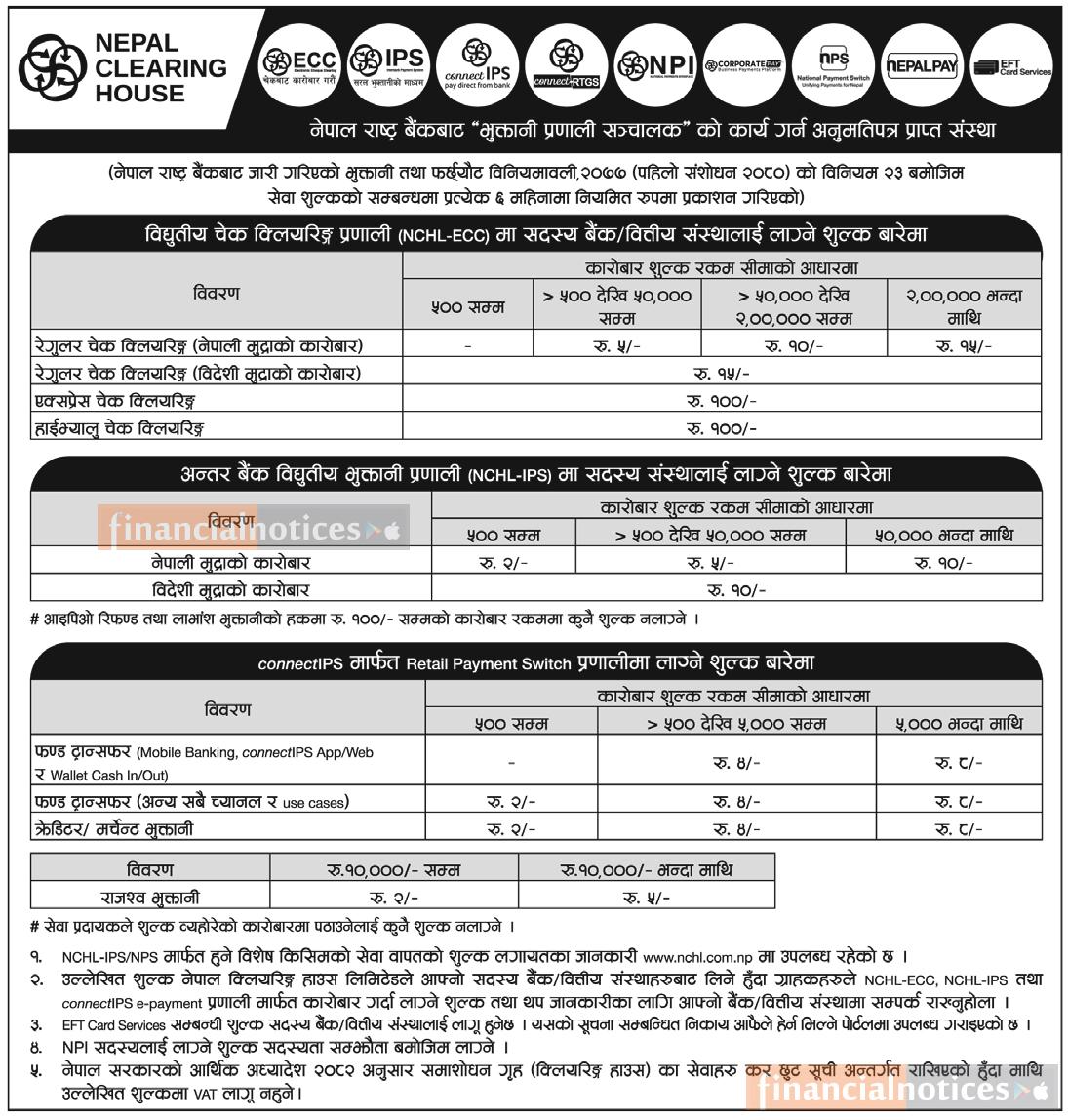 नेपाल क्लियरिङ्ग हाउसद्वारा डिजिटल भुक्तानी सेवाको नयाँ शुल्क दर सार्वजनिक सम्बन्धी सूचना
