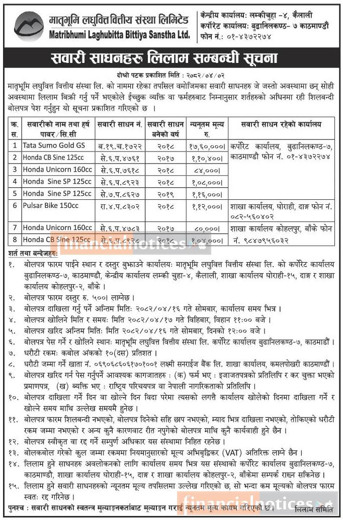 सवारी साधनहरु लिलाम बिक्री सम्बन्धी सूचना