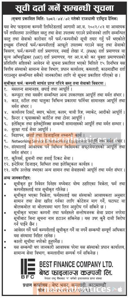 सुची दर्ता गर्ने सम्बन्धी सूचना