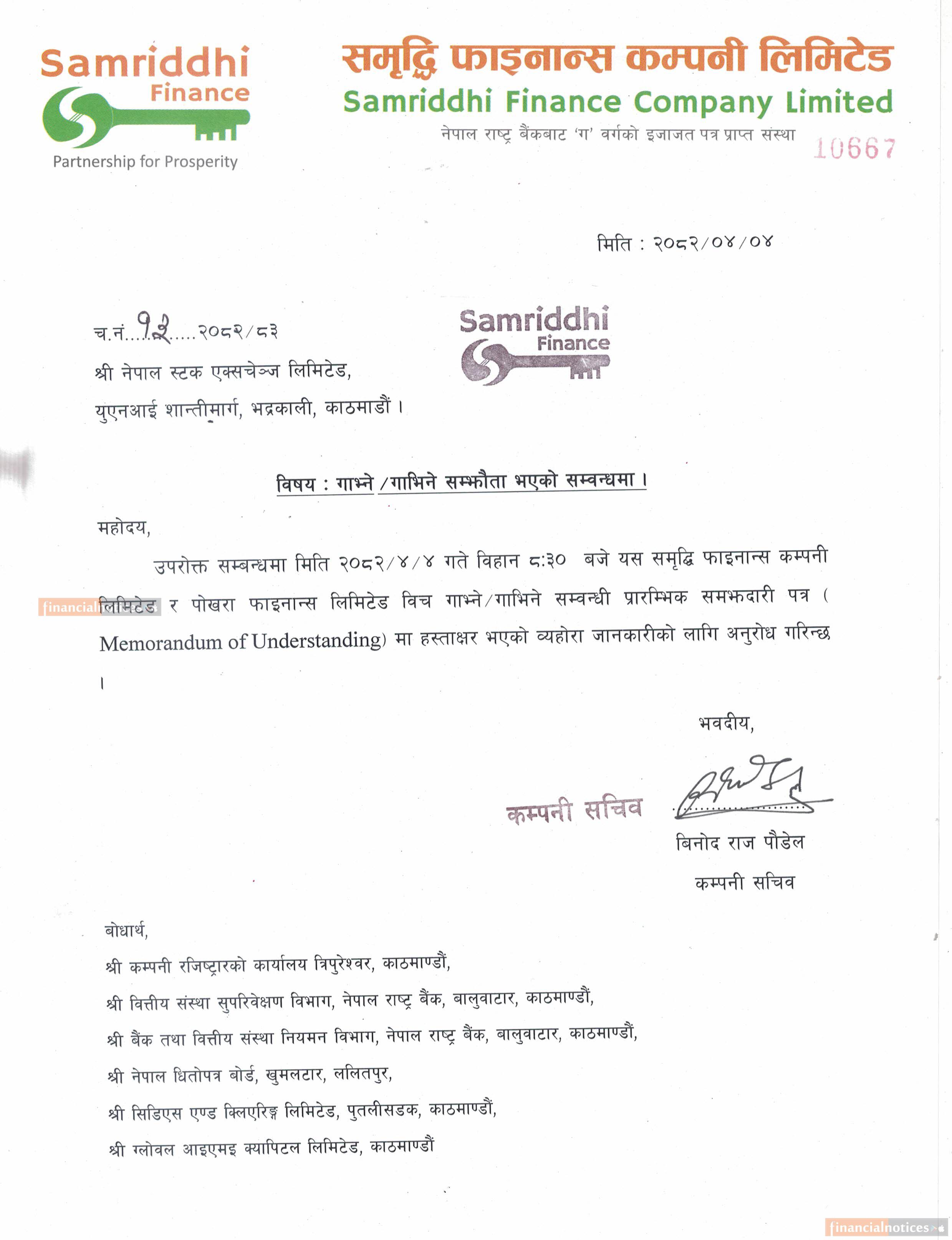 समृद्धि र पोखरा फाइनान्स मर्जर हुने बारे सूचना