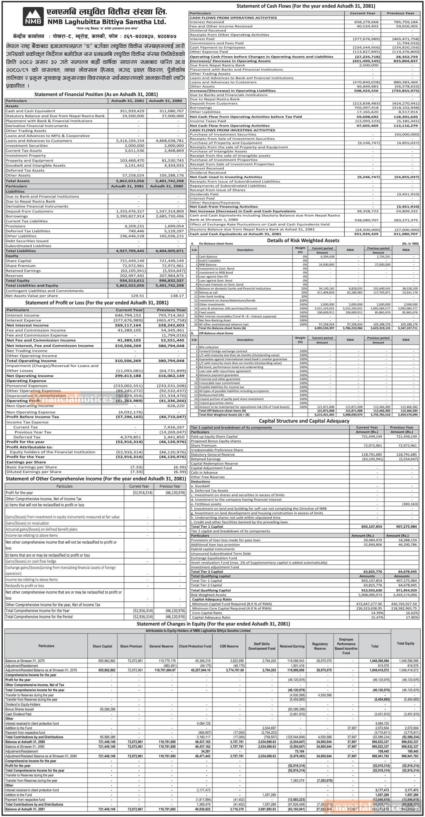 NMB Laghubitt has published its annual financial statement of the fiscal year 2080/81