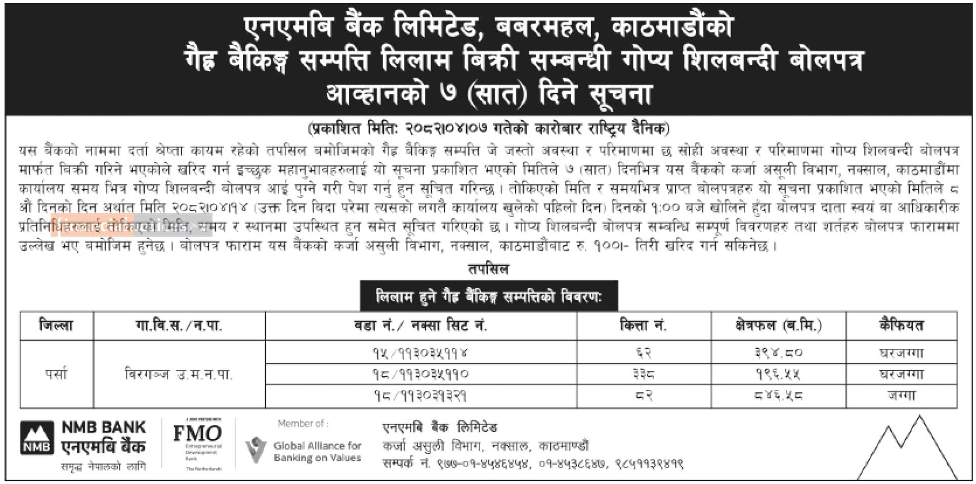 गोप्य शिलबन्दी बोलपत्र आव्हानको ७ दिने सूचना