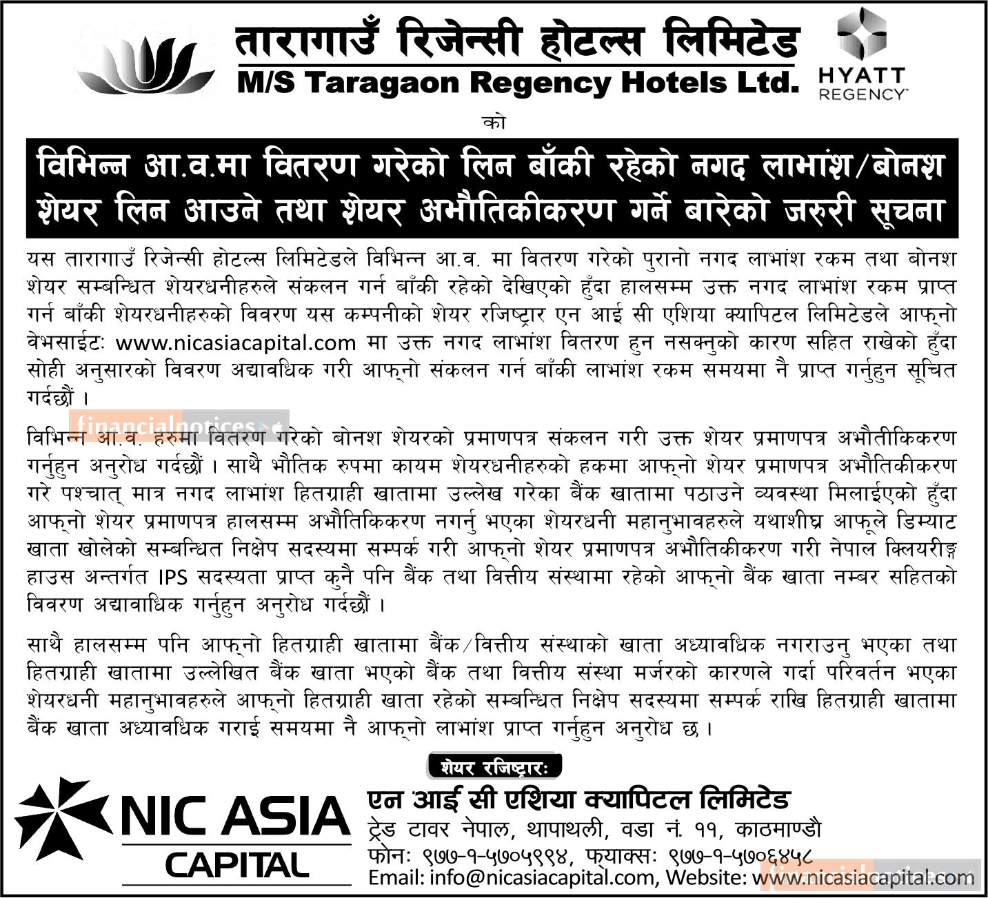 लाभांस लिन आउने तथा शेयर अभौतिकिकरण गर्ने सम्बन्धी सूचना