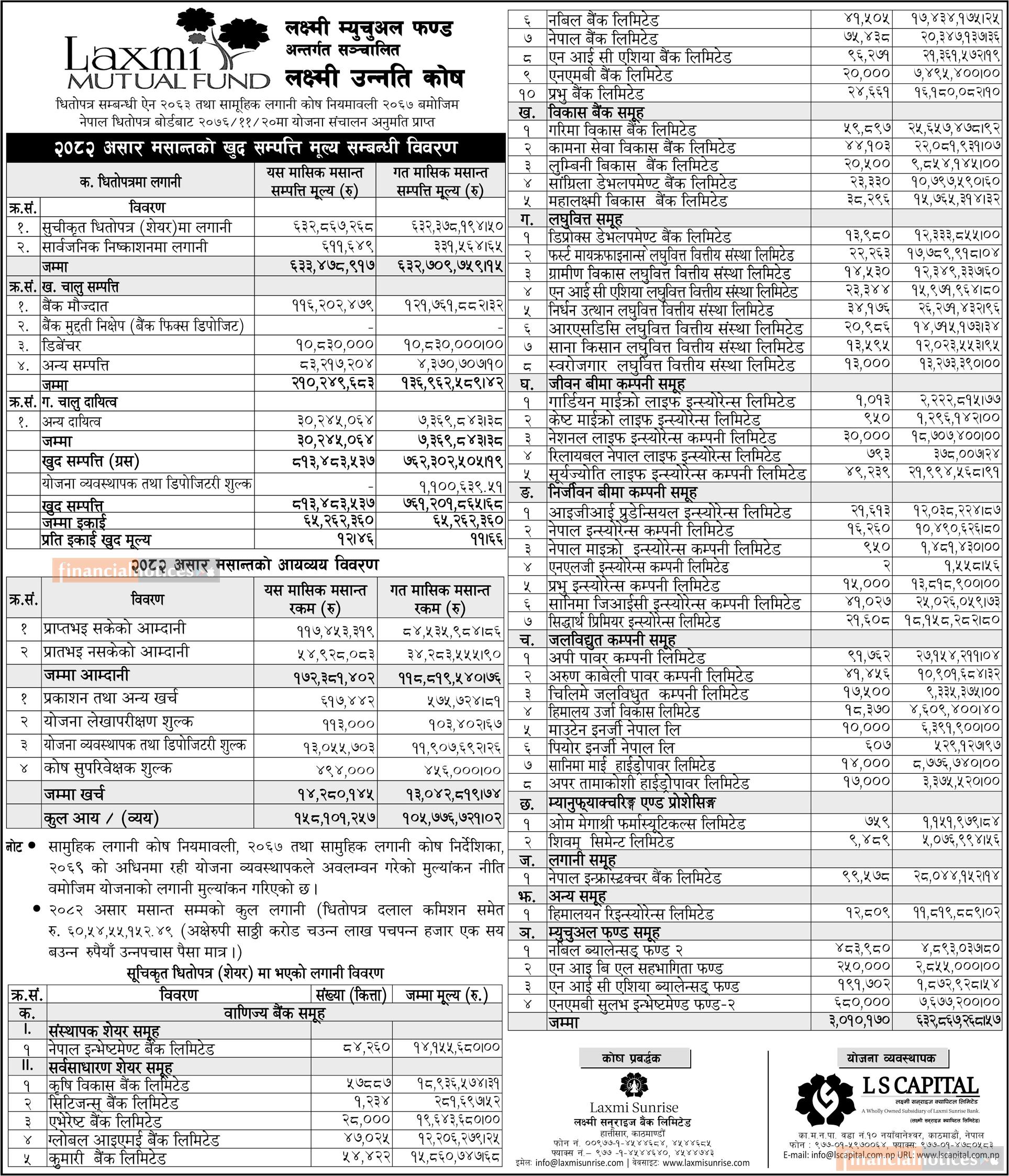 LS Capital Limited has published the “Laxmi Unnati Kosh” Net Asset Value till Ashad, 2082