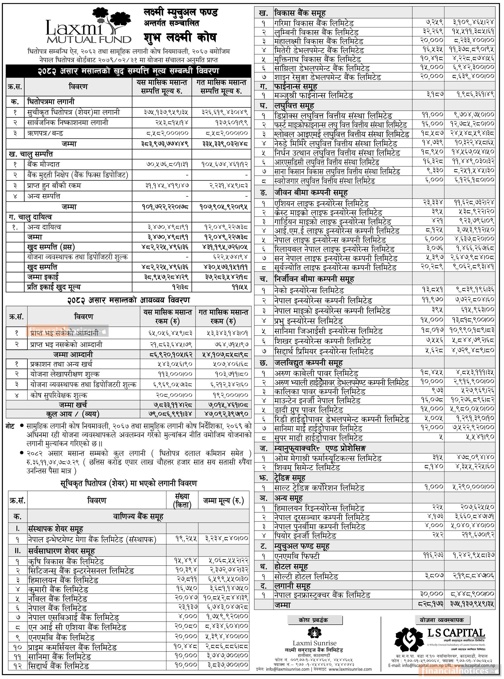 LS Capital Limited has published the “Shubha Laxmi Kosh” Net Asset Value till Ashad, 2082