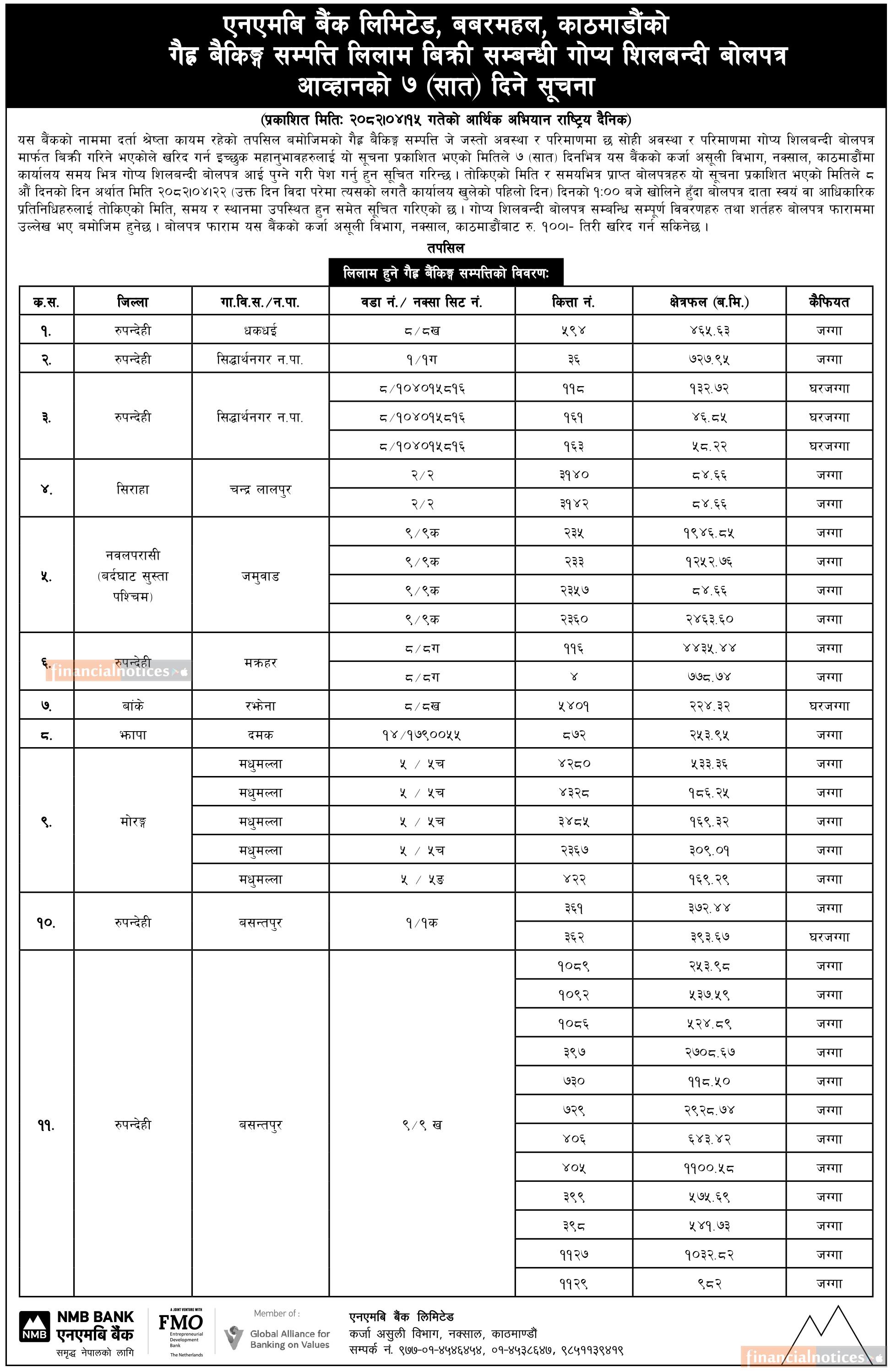 गैह्र बैंकिङ्ग सम्पत्ति लिलाम बिक्री सम्बन्धी गोप्य शिलबन्दी बोलपत्र आव्हानको सूचना