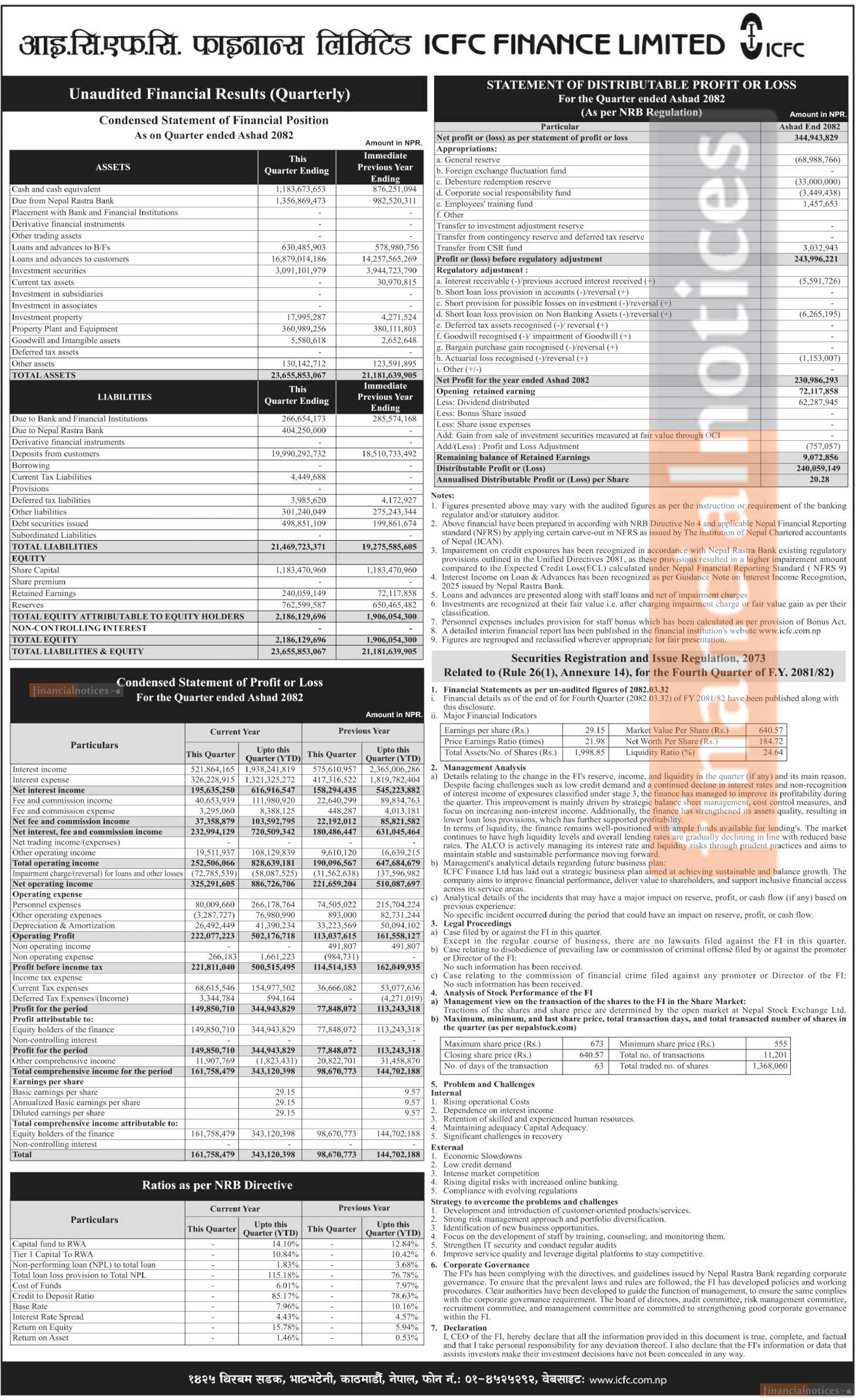 चौथो त्रैमाससम्ममा आइसीएफसी फाइनान्सको खुद नाफा ३४ करोड ४९ लाख रुपैयाँ