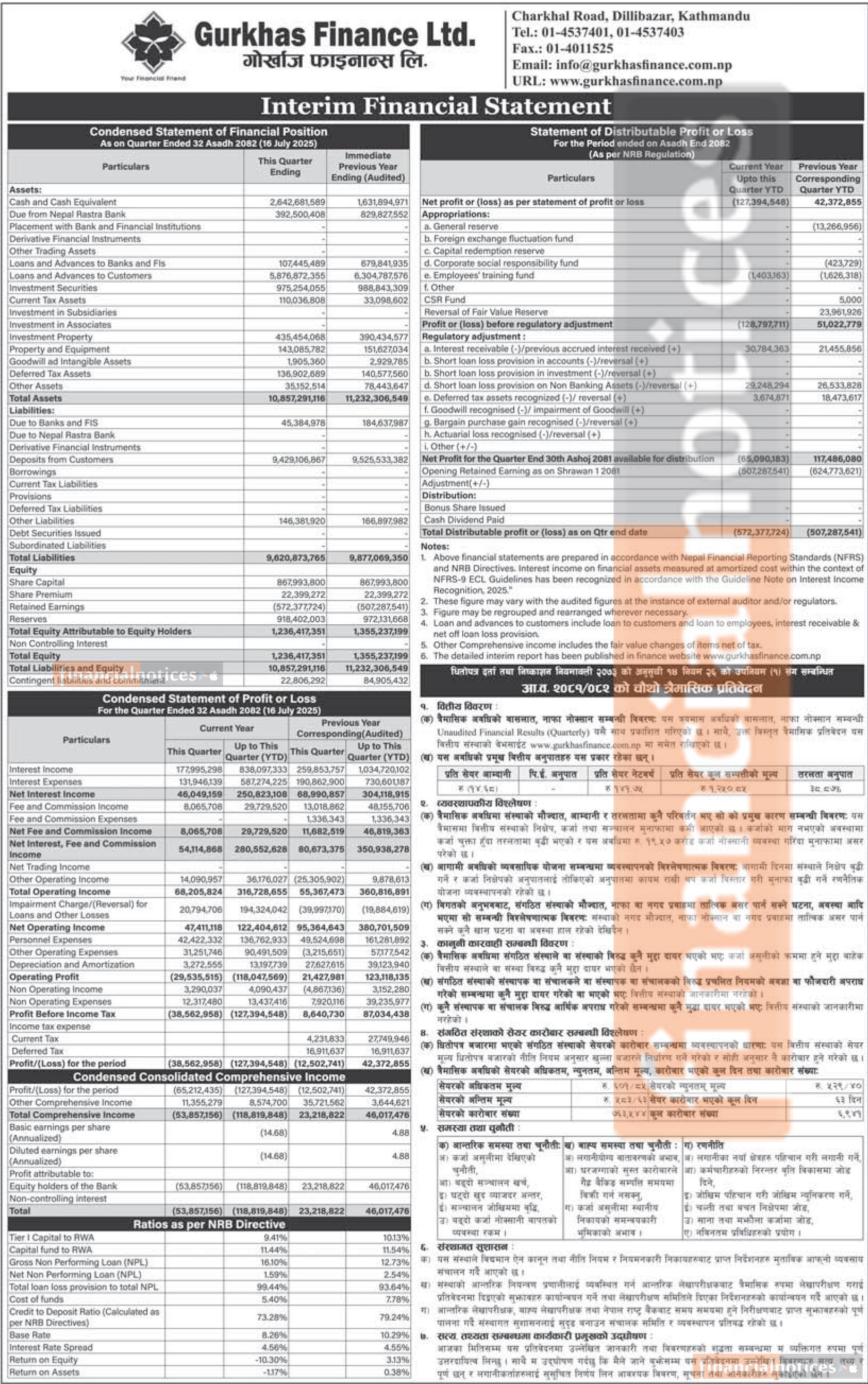 Gurkhas Finance Limited has posted a net loss of Rs 127.39 million and published its 4th quarter