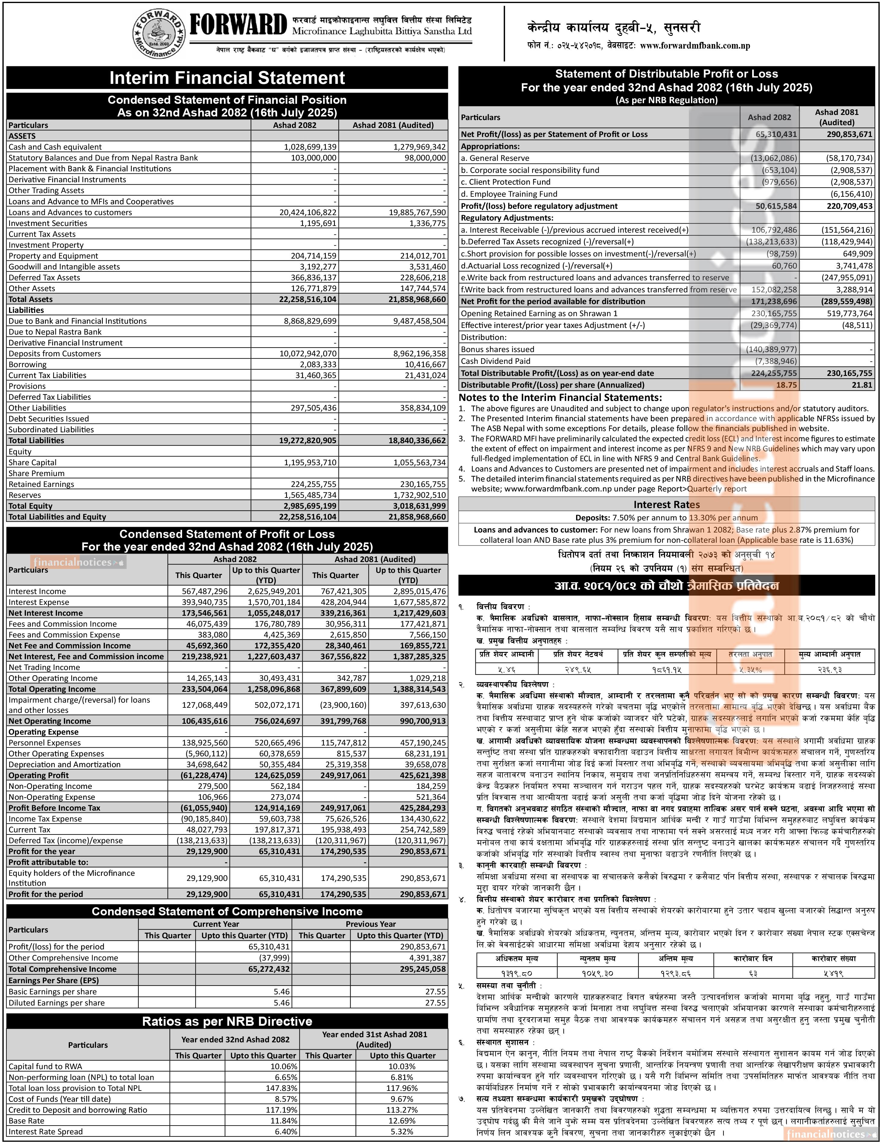 Forward Microfinance has posted a net profit of Rs 65.31 million and published its 4th quarter