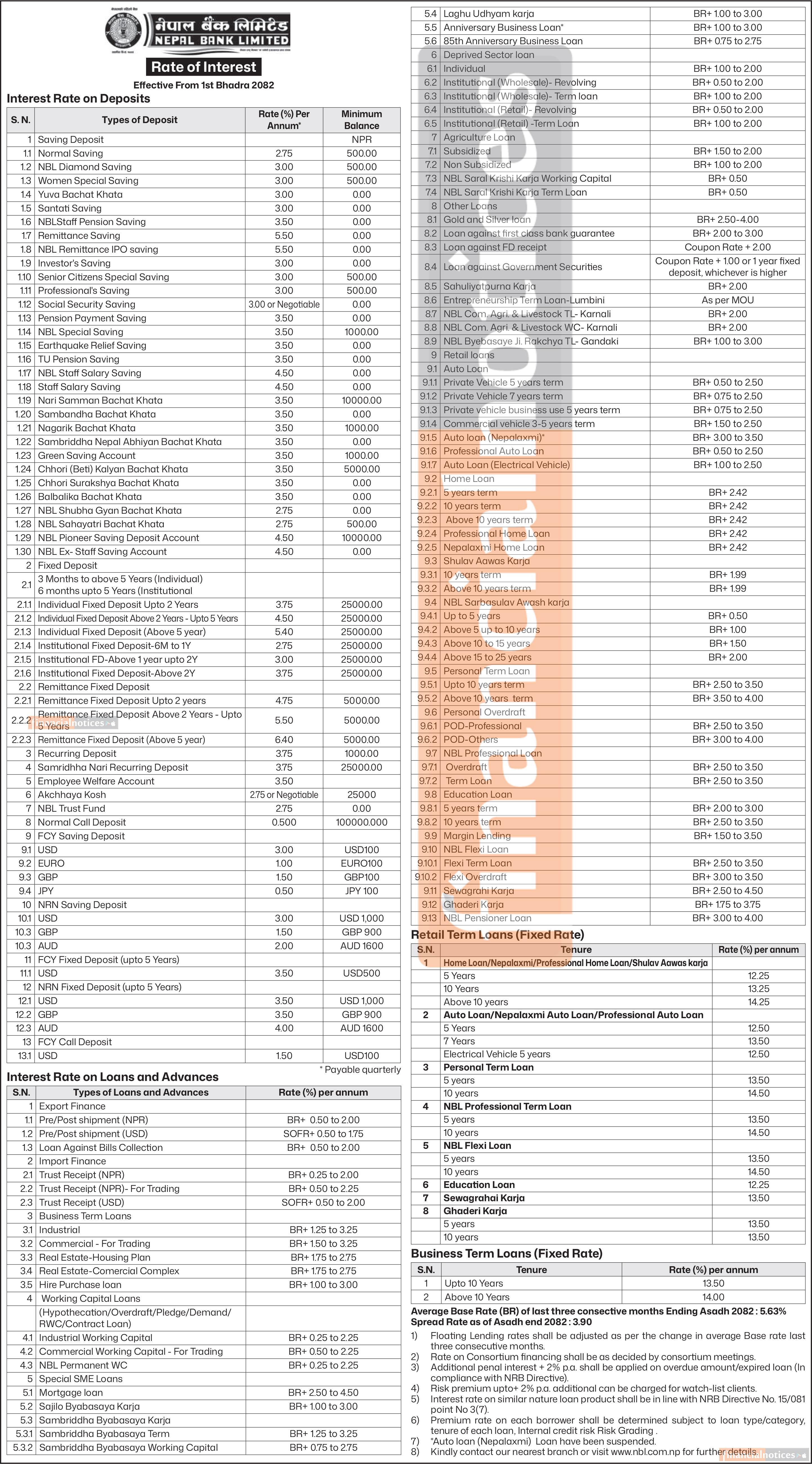 नेपाल बैंकले भाद्र १ गतेदेखि लागु हुने गरी आफ्नो बचत तथा कर्जा तर्फको नयाँ ब्याजदर सार्वजनिक सार्वजनिक गरेको छ ।