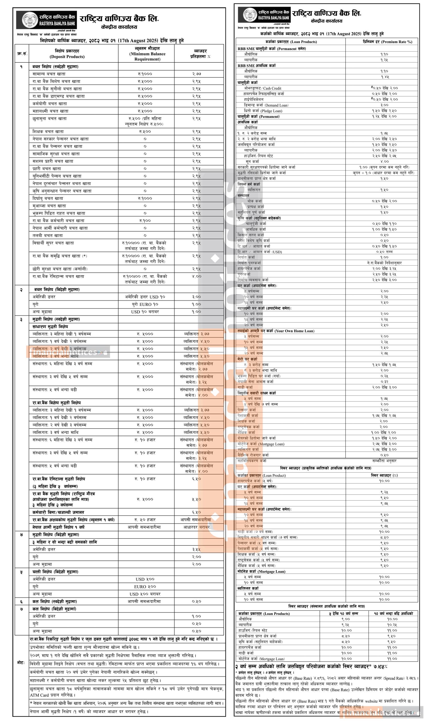 राष्ट्रिय वाणिज्य बैंकले भाद्र १ गतेदेखि लागु हुने गरी बचत तथा कर्जा तर्फको ब्याजदर तालिका सार्वजनिक गरेको छ ।