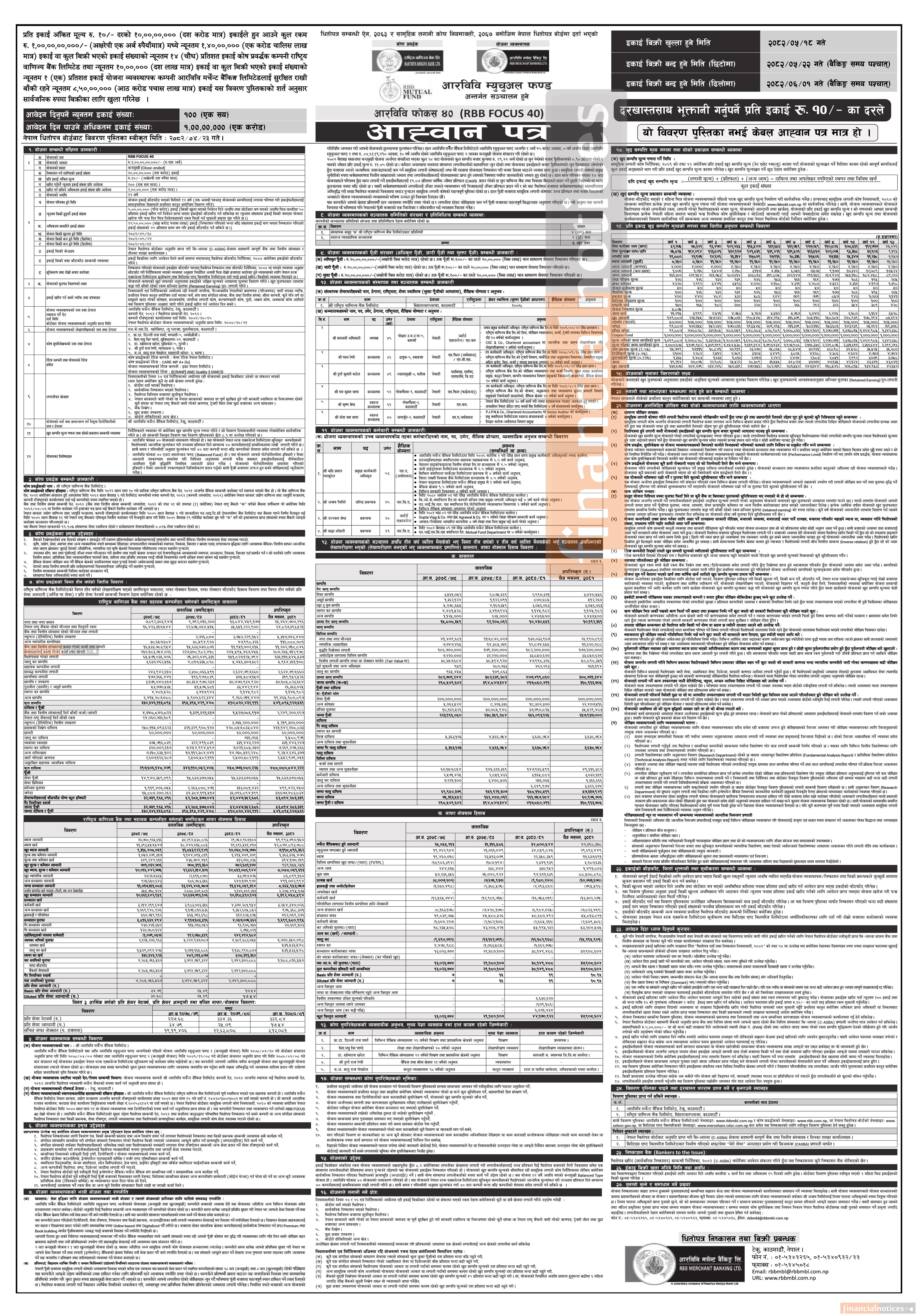 आरबिबि मर्चेन्ट बैंकिङ्गले भदौ १८ गतेदेखि ‘आरबिबि फोकस ४०’ म्युचुअल फण्ड सार्वजनिक निष्काशनमा ल्याउने भएको छ। एक अर्ब रुपैयाँ बराबरको १० करोड इकाईमध्ये सर्वसाधारणका लागि ८ करोड ५० लाख इकाई बिक्री खुला गरिएको छ। प्रतिइकाई १० रुपैयाँ अंकित दरमा जारी हुने यस योजनामा न्यूनतम १०० देखि अधिकतम १ करोड इकाईसम्म आवेदन दिन सकिनेछ। १२ वर्ष अवधिको यो सामूहिक लगानी कोषमा आवेदन भदौ १८ गतेदेखि २२ गतेसम्म दिन सकिने व्यवस्था गरिएको छ, तर सो अवधिभित्र सबै इकाई बिक्री नभए असोज १ गतेसम्म निष्काशन अवधि लम्बिन सक्छ।
