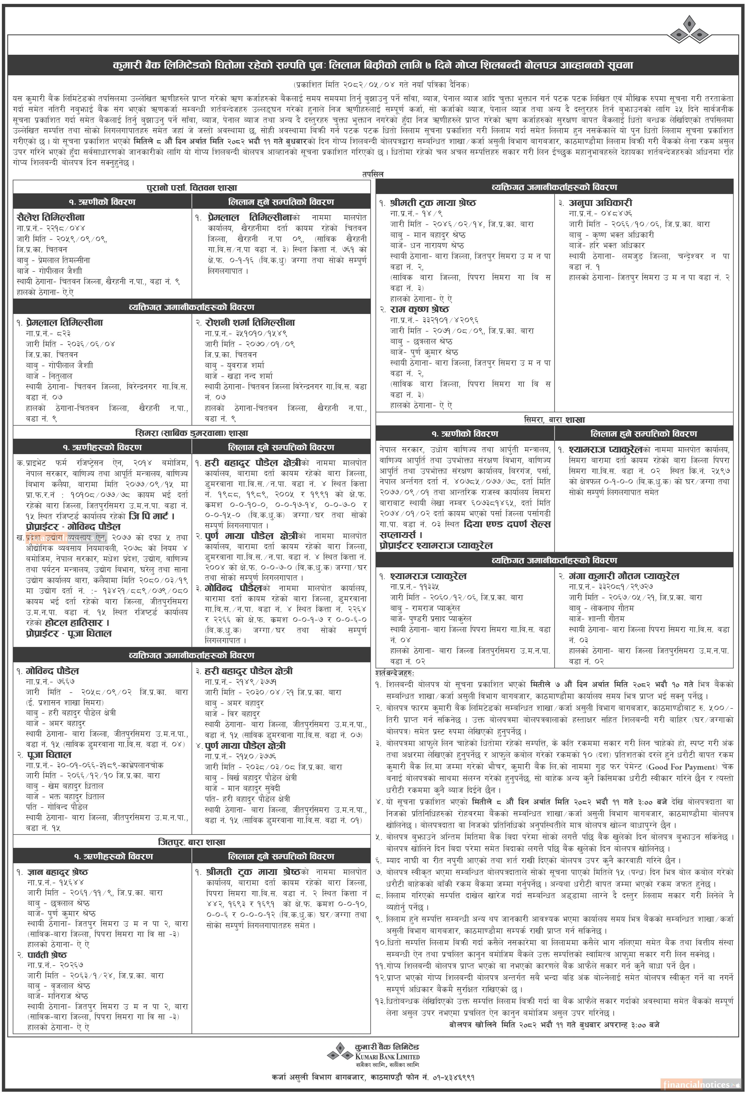 Published by Kumari Bank Ltd (KBL) on 2082-5-4