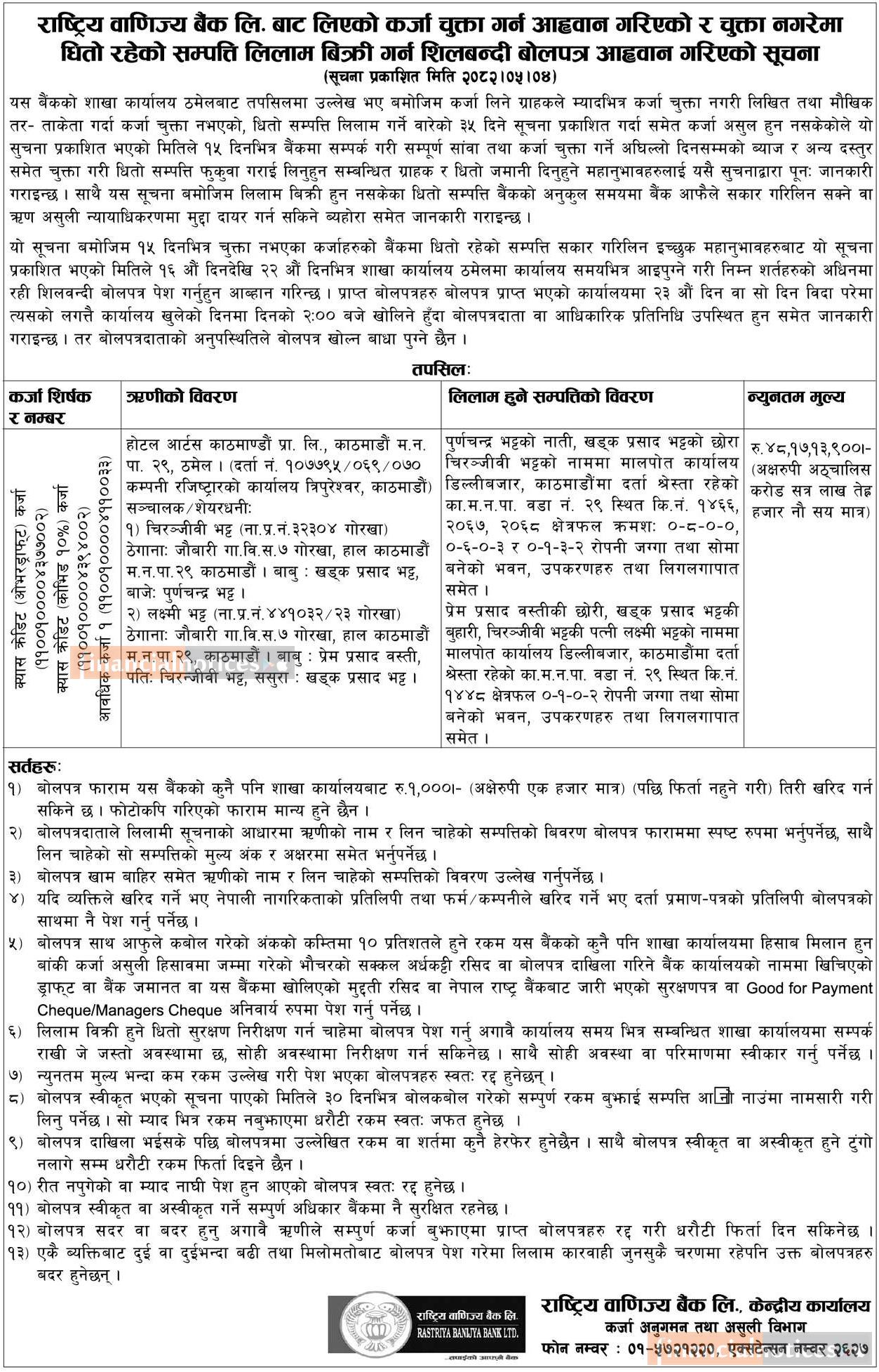 Kumari Bank Auction Notice for Non-Banking Assets at Mahendranagar, Kanchanpur -