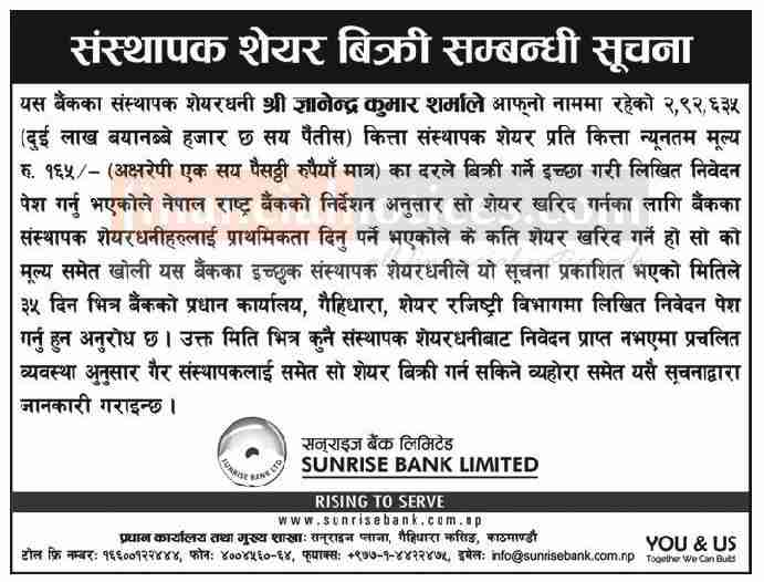 Published by Sunrise Bank Limited Rajdhani Daily on 2076-1-03