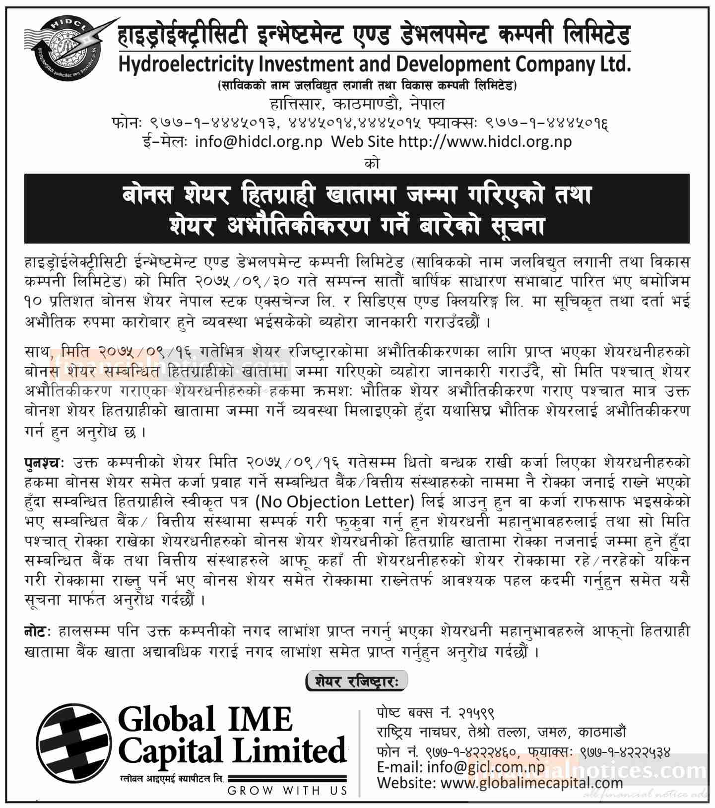शेयर अभौतिकीरण गर्ने बारेको सूचना
