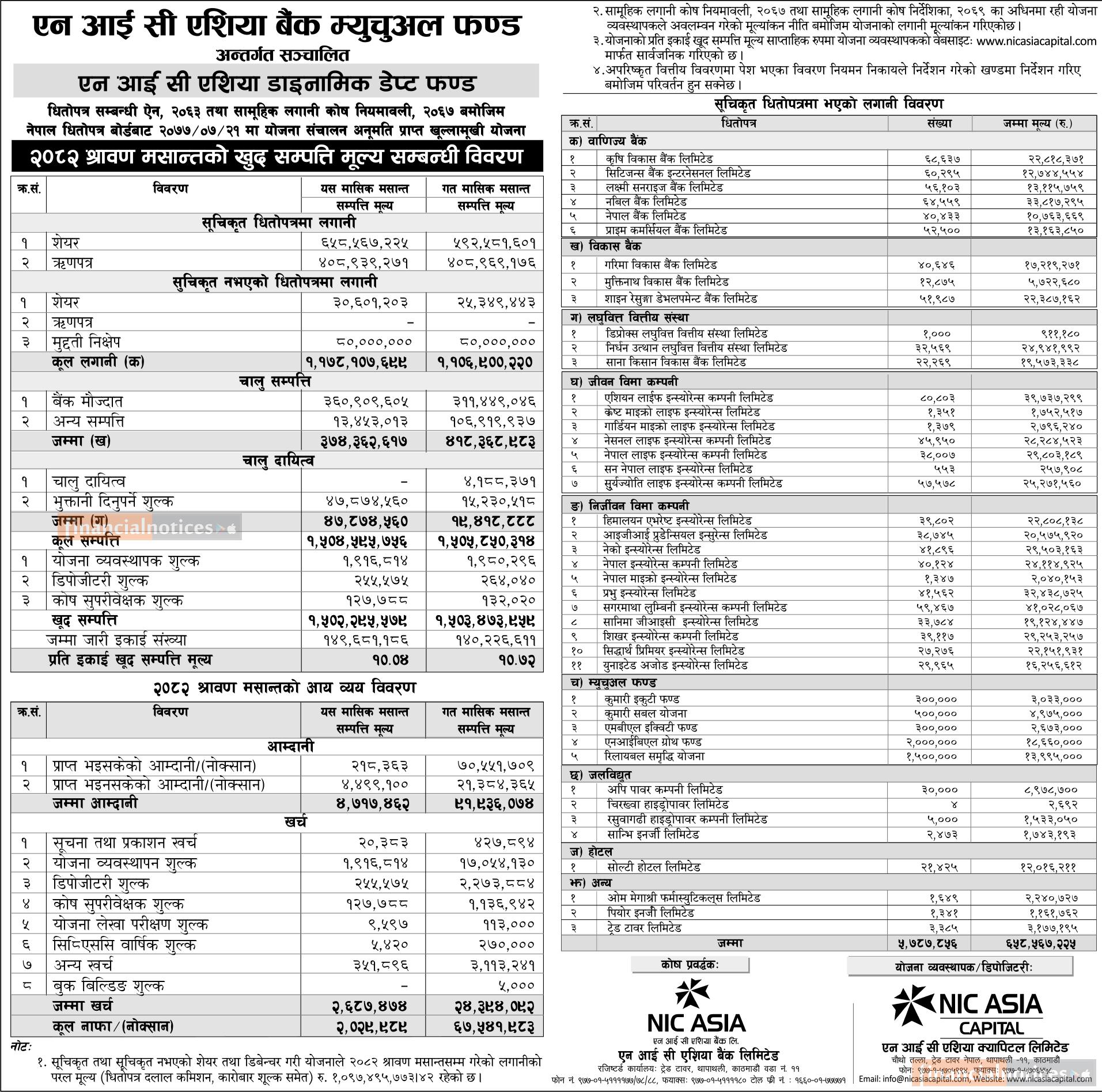 NIC Asia Capital has published "NIC Asia Dynamic Debt Fund" Net Assets Value till Shrawan, 2082