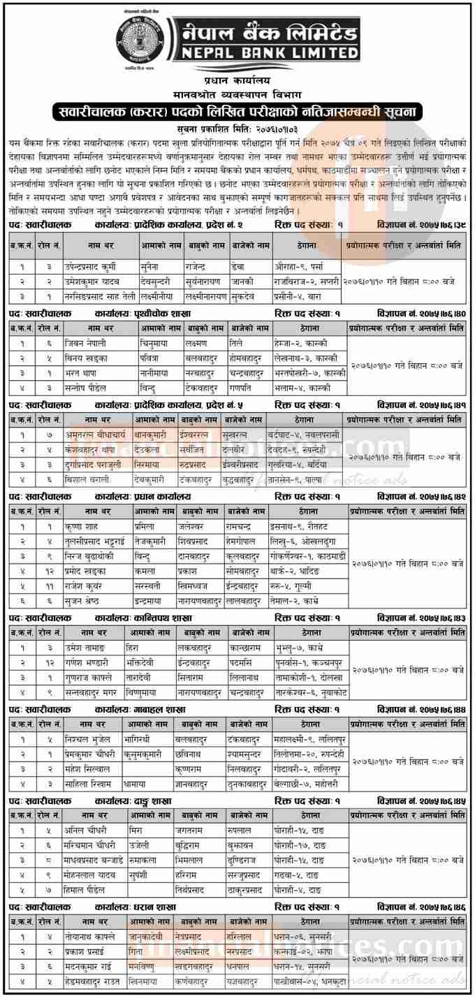 लिखित परिक्षाको नतिजा सम्बन्धी सूचना