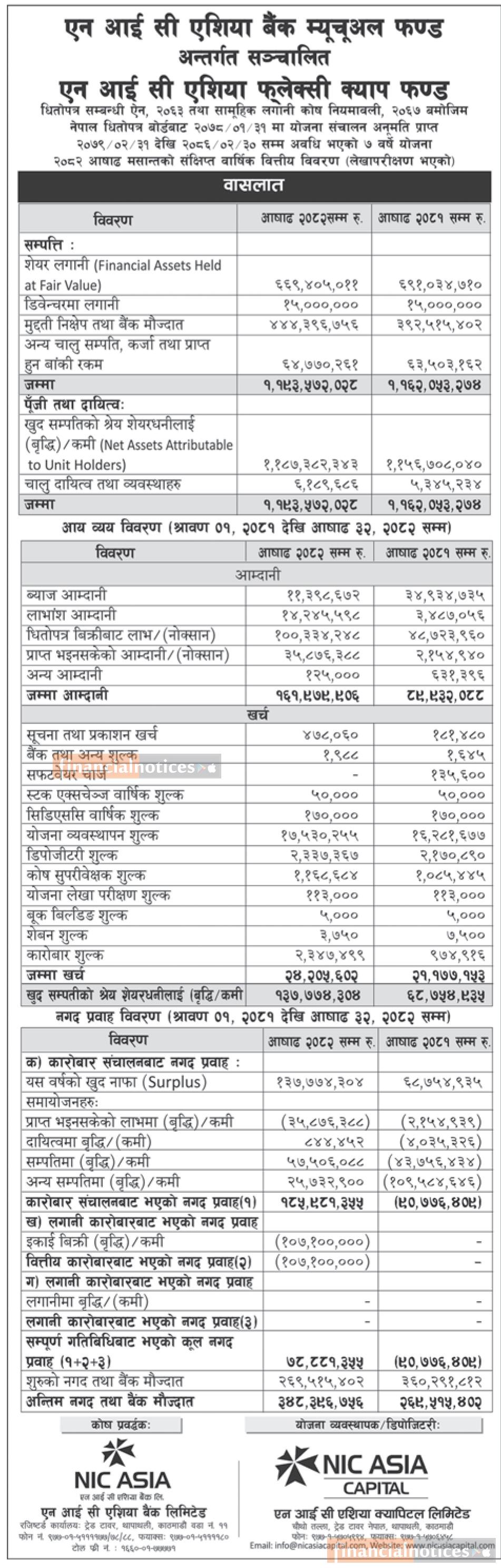 NIC Asia Capital published financial highlights of "NIC Asia Flexi Cap Fund" of the FY 2081/82