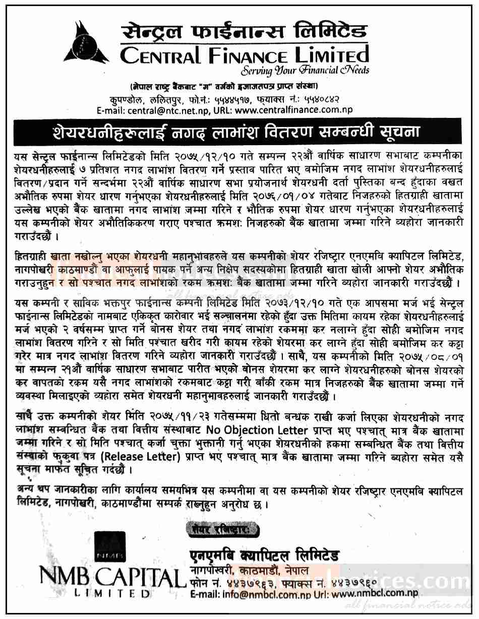 लाभांश वितरण गर्ने सम्बन्धी सूचना