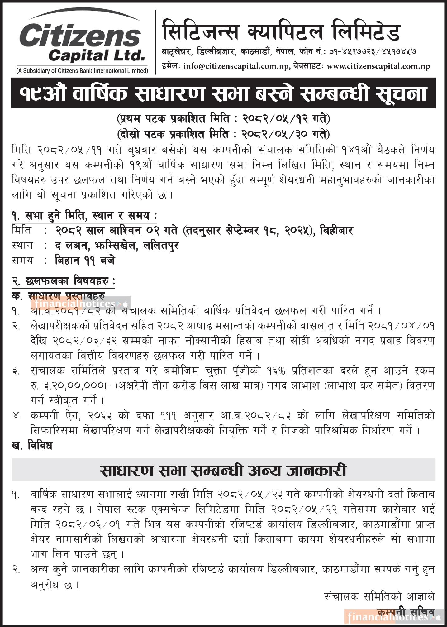१९औँ वार्षिक साधारण सभा बस्ने सम्बन्धी सूचना