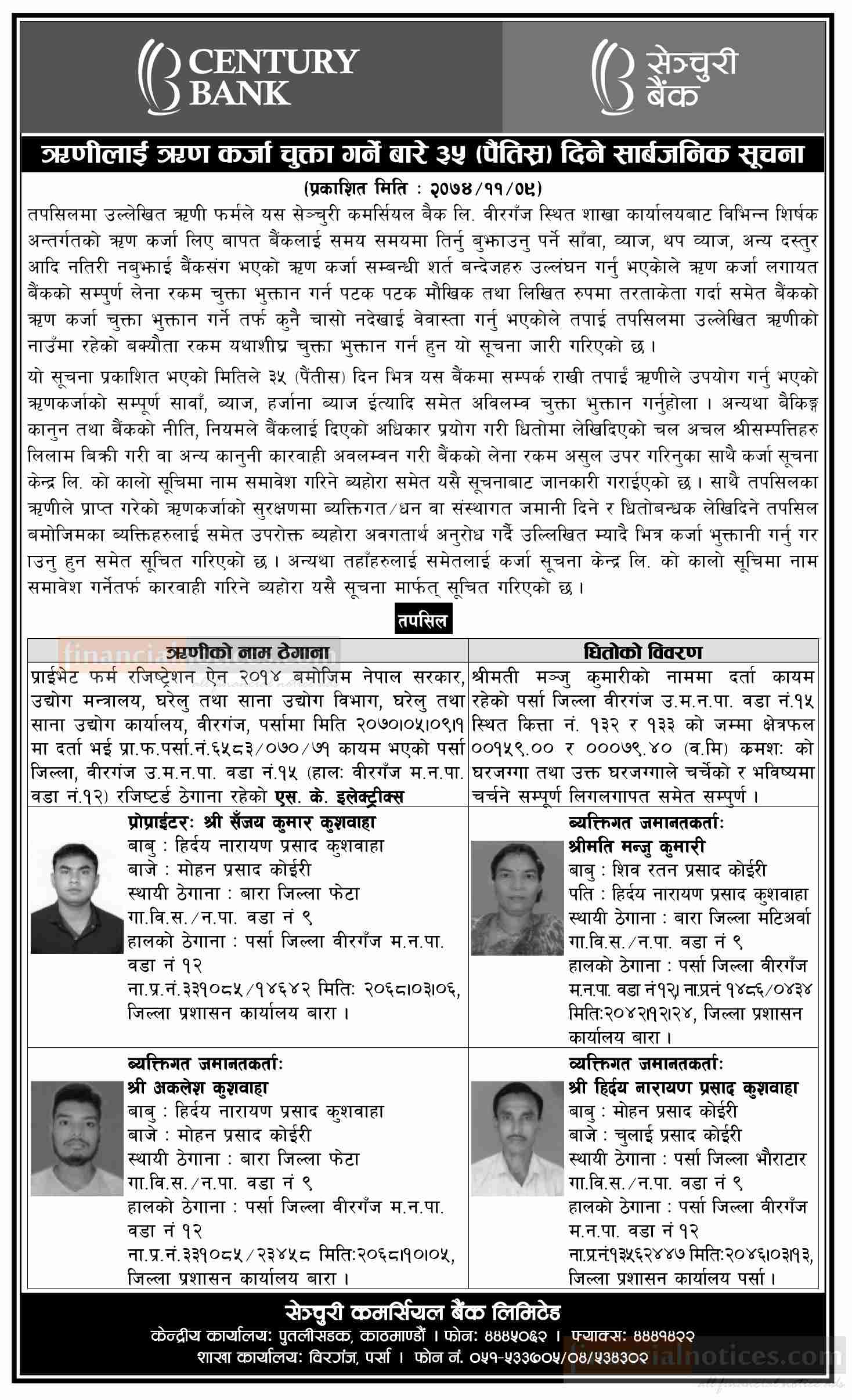 Published by Century Bank Ltd. Aarthik Abhiyan Newspaper on 2074-11-09