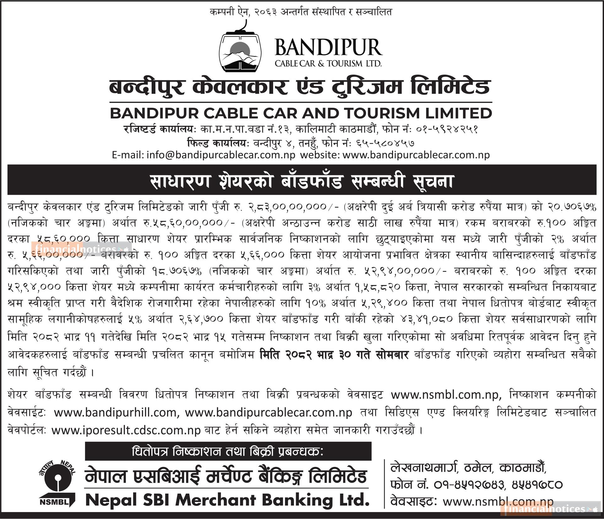 Bandipur Cable Car and Tourism Limited has allotted its 43,41,080 units IPO shares to the the general public on 30th Bhadra, 2082.