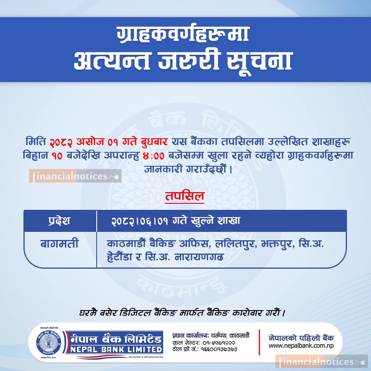 नेपाल बैंकको कुन कुन शाखा कतिबजे सम्म खुल्ला रहन्छन ?