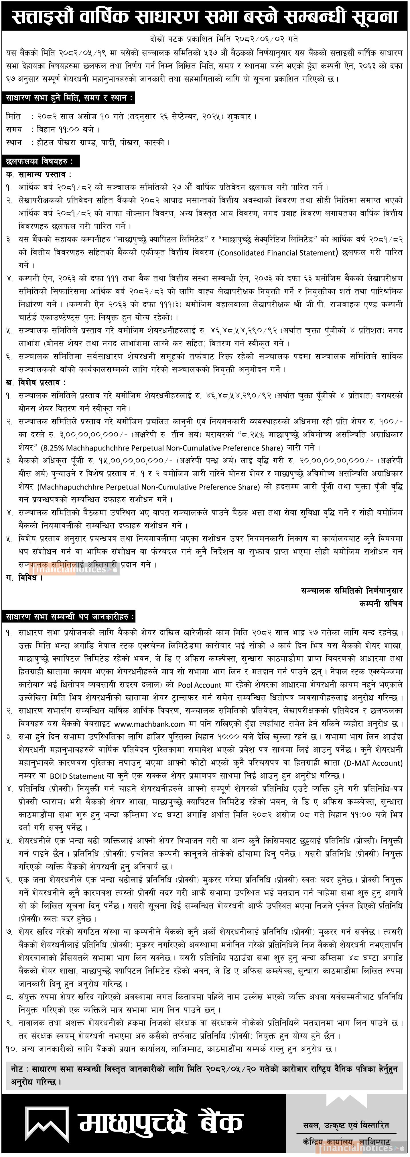 सत्ताइसौँ वार्षिक साधारण सभा बस्ने सम्बन्धी सूचना
