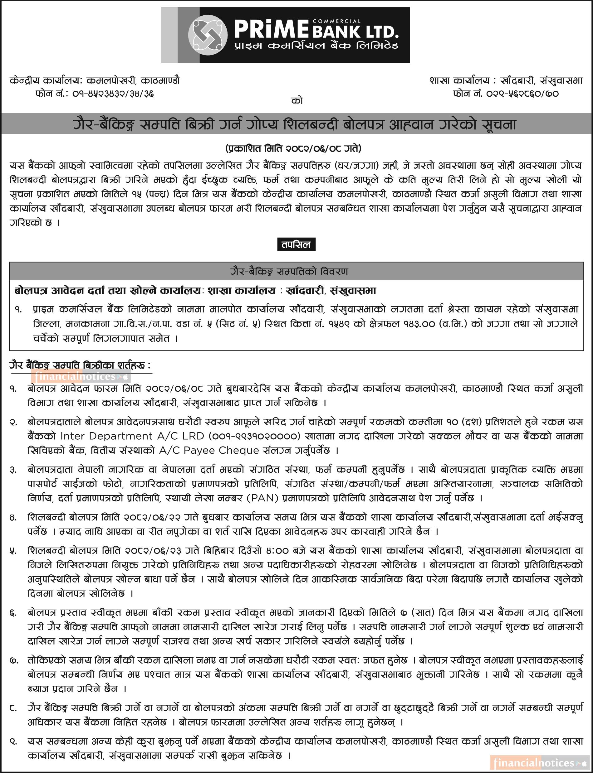 गैर बैंकिङ सम्पत्ति बक्रि सम्बन्धमा बोलपत्र आह्वानको सूचना -