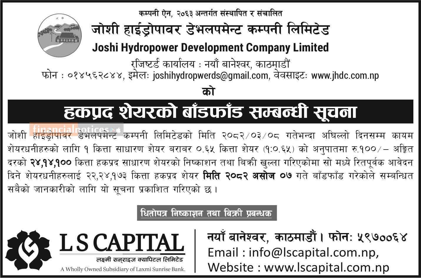 जोशी आइड्रोपावरको हकप्रद शेयरको बाँडफाँड सम्बन्धी सूचना -