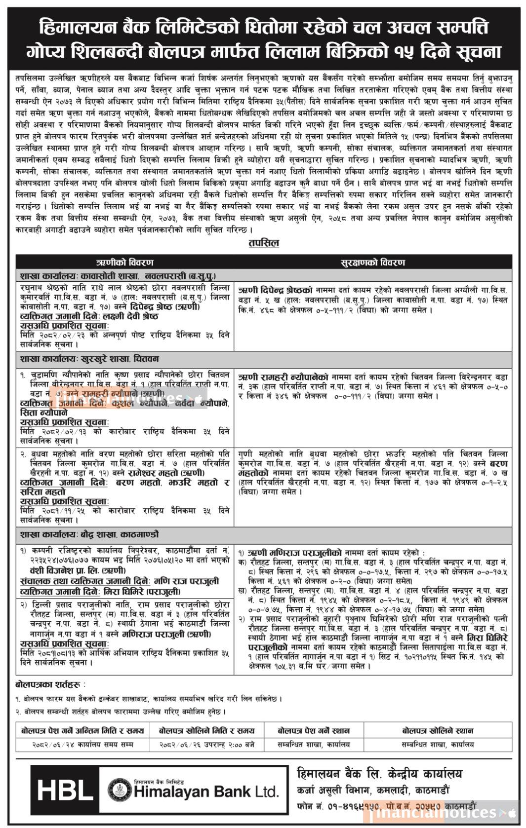 धितोमा रहेको सम्पत्ती लिलाम बिक्रि गर्दै हिमालयन बैंक