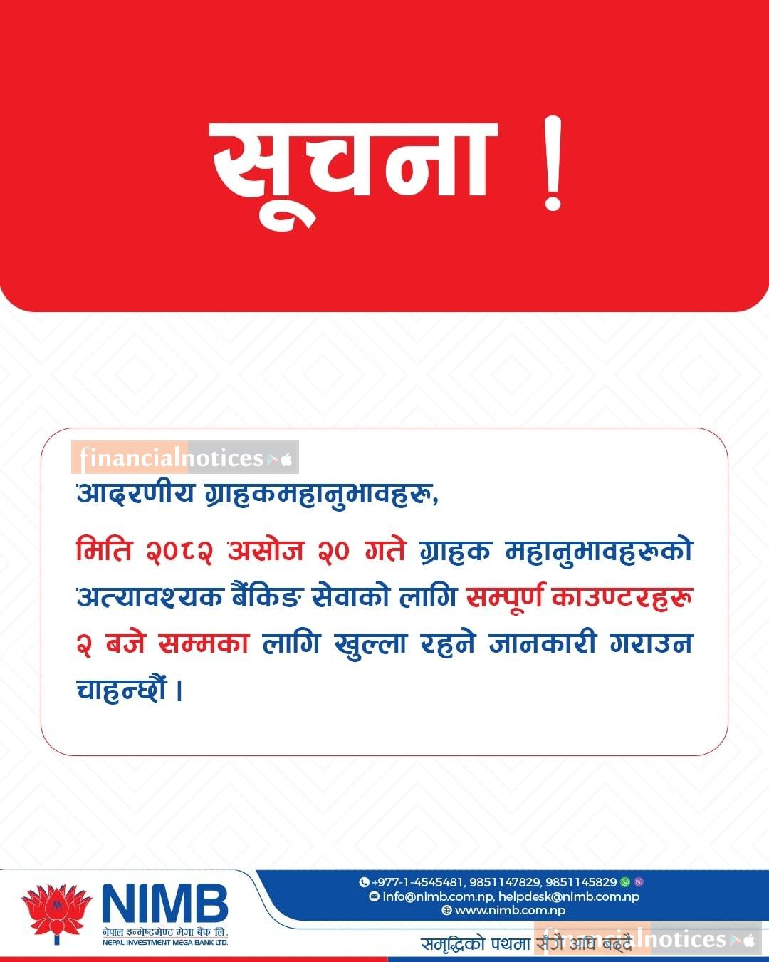 सम्पूर्ण काउण्टरहरु खुल्ला रहने सम्बन्धी सूचना