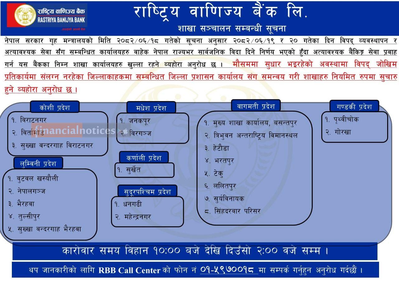 Notice regarding Branch Operation on 20th Ashwin 2082