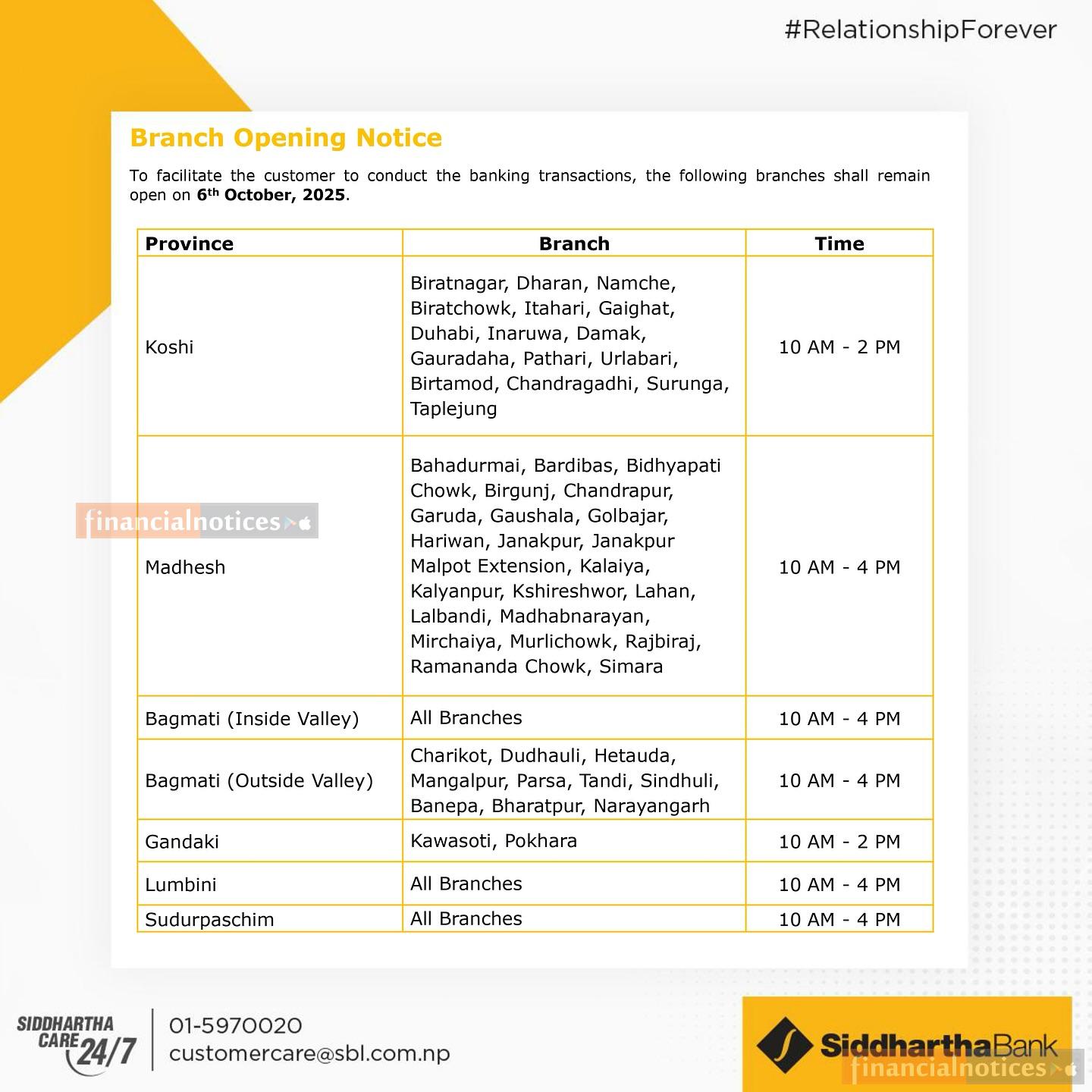 Branch Opening Notice of Siddhartha Bank Limited