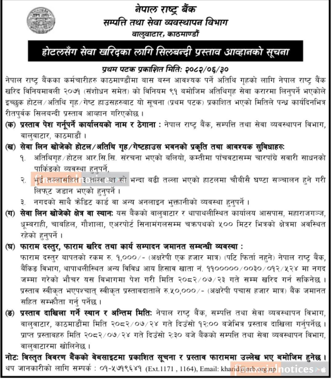 होटेलसॅग सेवा खरिदका लागी सिलबन्धि प्रस्ताव आह्वानको सूचना