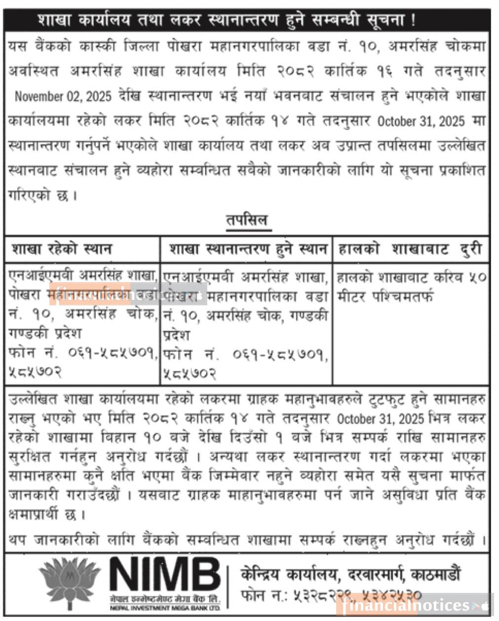 शाखा कार्यलय तथा लकर स्थानान्तरण हुने सम्बन्धी सूचना